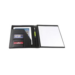 You'll always play your cards "write" when the Atlantis Leather Padfolio is in your campaign! With Tuscan cowhide, genuine leather, this non-zippered padfolio features a pop-up, self-adhering note holder, full-size flap pocket organizer, curved trimmed exterior pocket, I.D. window pocket, elastic pen loop and standard 8 1/2"x11" ruled note pad. The perfect portfolio for meetings, conferences and presentations. Includes Eco Fabric Gift Bag
